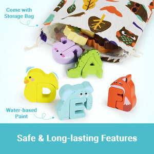 Kids Alphabet Cartoon Creative Wooden Puzzle Letters - 52 Pieces